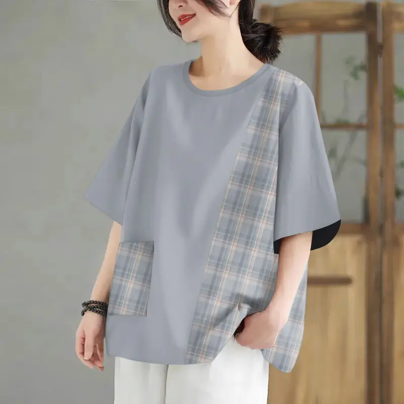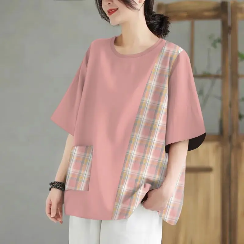 2025 Summer New O-neck Short Sleeve Pocket T-Shirts Ladies Casual Korean Fashion All-match Oversized Top Tee Women Clothing Tops